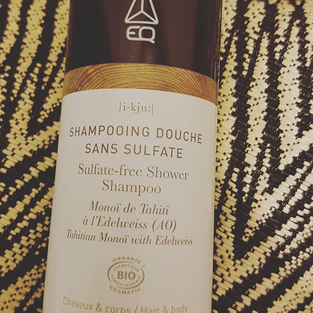 Shampoing simplissime sans sulfate. J’utilise le shampoing de la marque EQ qui sent le monoï et