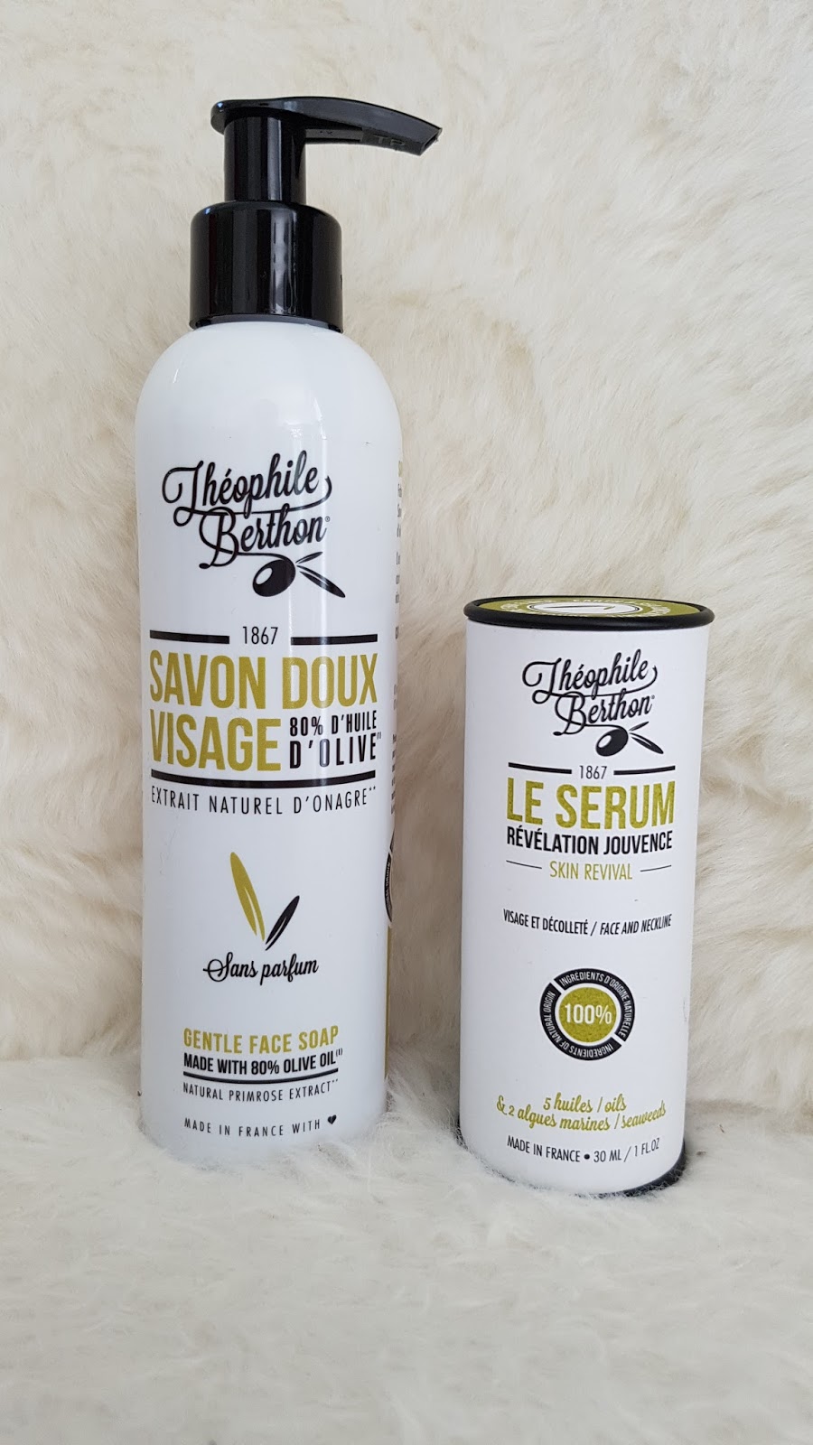 Le savon doux visage m’a conquise également. Très doux et très efficace. De plus, il est super économique : après avoir bien décollé mascara, rouge à lèvre avec mon huile de coco Hevea, j’applique une mini goutte de savon visage Théophile Berthon entre mes mains et avec un peu d’eau, je nettoie mon visage… je sens ma peau bien nette et aucune sensation de tiraillement. Je suis conquise. Il est noté sur le packaging que Théophile Berthon fabrique ses produits en France…et avec amour…j’y crois ! avec amour pour leurs produits, notre peau, mais aussi pour la planète. Je vous montre :