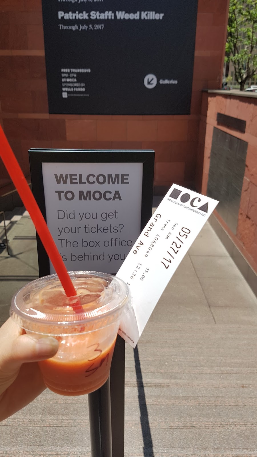 Ca y’est, nous arrivons au MOCA ! devant le musée, un camion de fruits, smoothies, jus etc. nous donne envie. Je prends un super bon smoothie contenant mangue, ananas et tout plein de trucs trop bons.