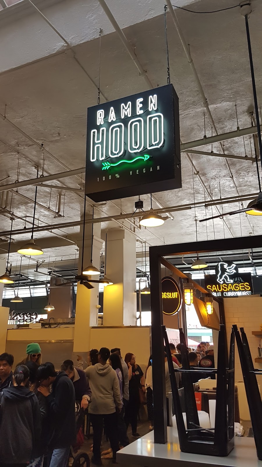 Stands de restauration asiatique, vegan, mexicaine… à manger sur place, à emporter… il y a des tabourets pour manger directement dans les stands, mais vous pouvez aussi manger sur des tables en plein milieu du marché. C’est pratique : l’un prend mexicain, l’autre un poke bowl et hop on se retrouve pour manger ensemble à la même table !