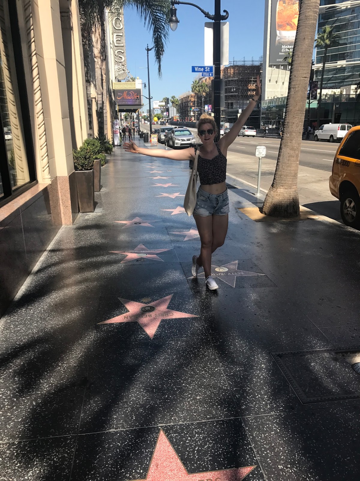 Sur Hollywood Boulevard, on commence à lire chaque étoile puis il y en a tant et il y a tant de monde… on marche dessus, on s’arrête de temps à autre. On admire certains noms, on rigole devant d’autres… on prend une multitude de photos.